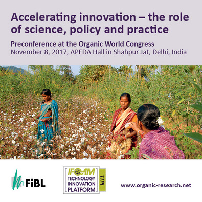 On November 8, 2017, the conference "Accelerating innovation - the role of science, policy and practice" took place as a preconference of the Organic World Congress in Dehli, India. The pre-conference was organized by the Research Institute of Organic Agriculture FiBL and TIPI, the Technology Innovation Platform of IFOAM - Organics International.
